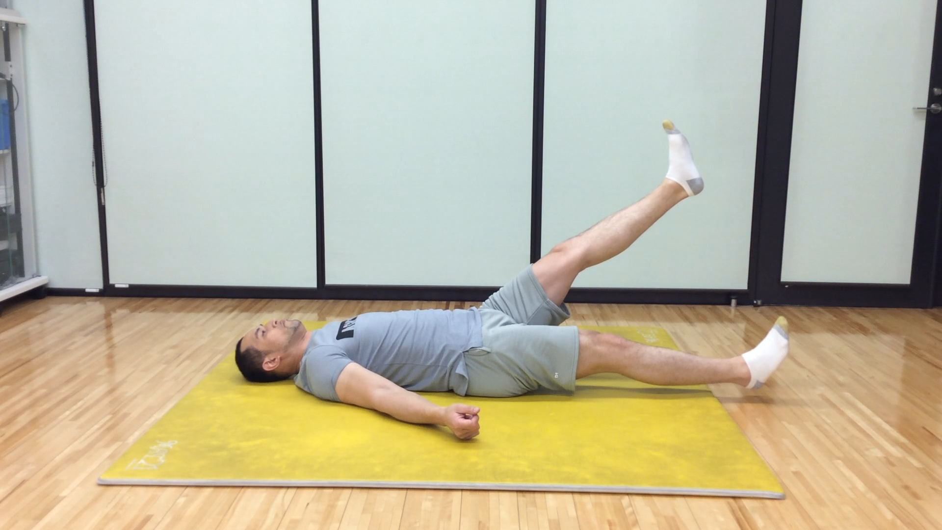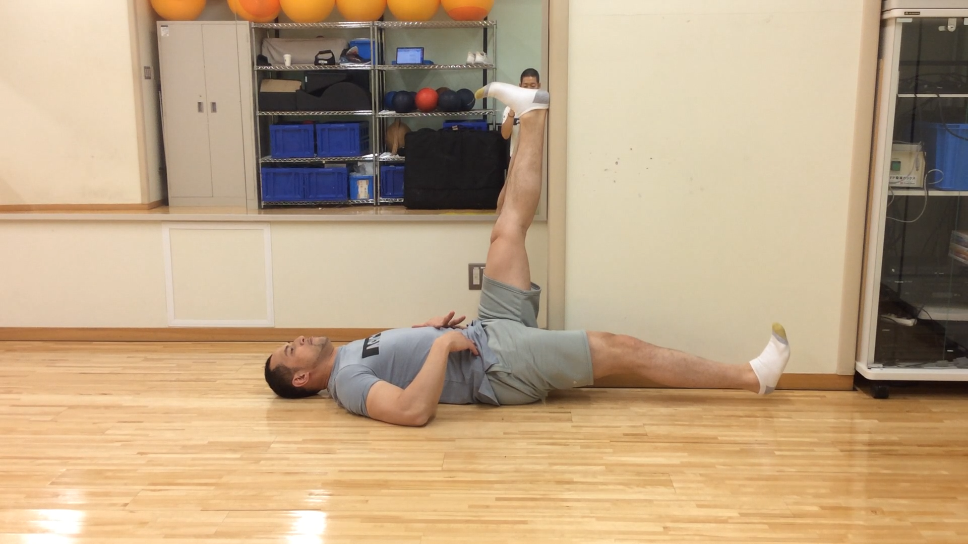 脚を低い位置に保ちながら行うことで体幹部の筋力向上を図ります。