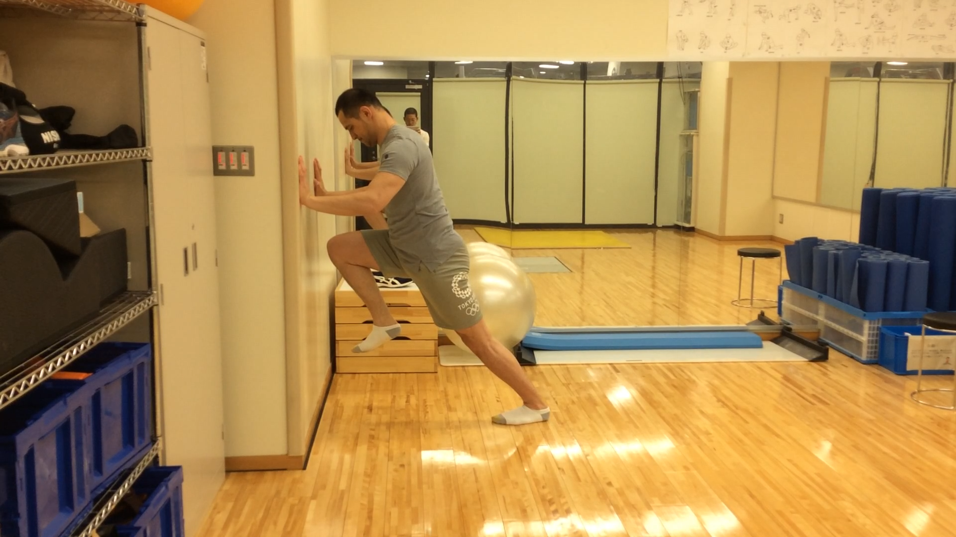 足首の可動性改善を目的とした立位でのエクササイズです。